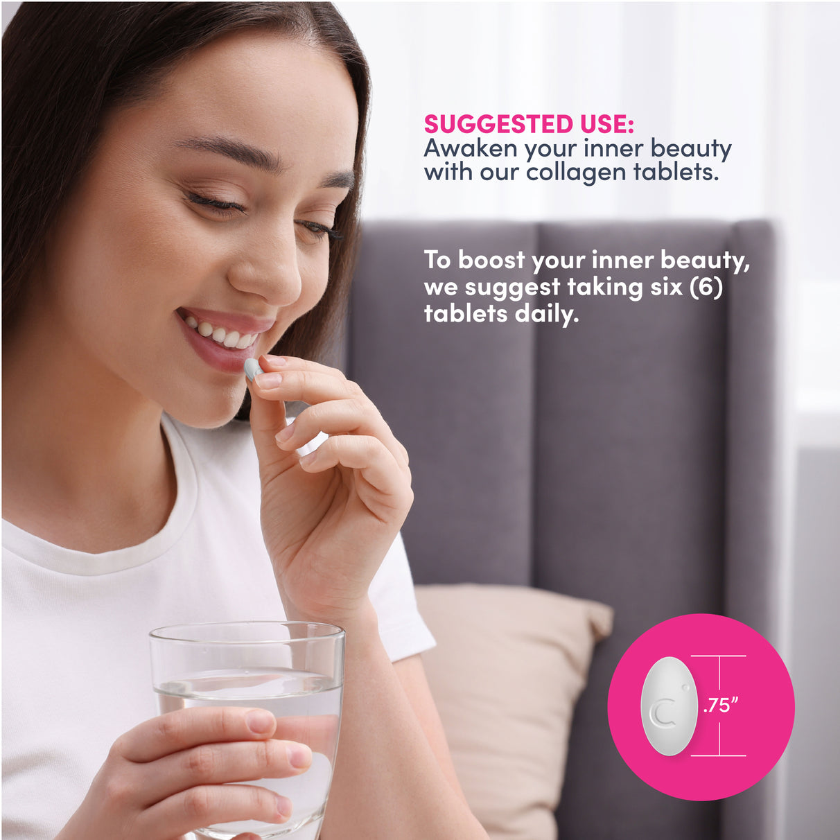 To boost your inner beauty, we suggest taking six (6) tablets daily.
