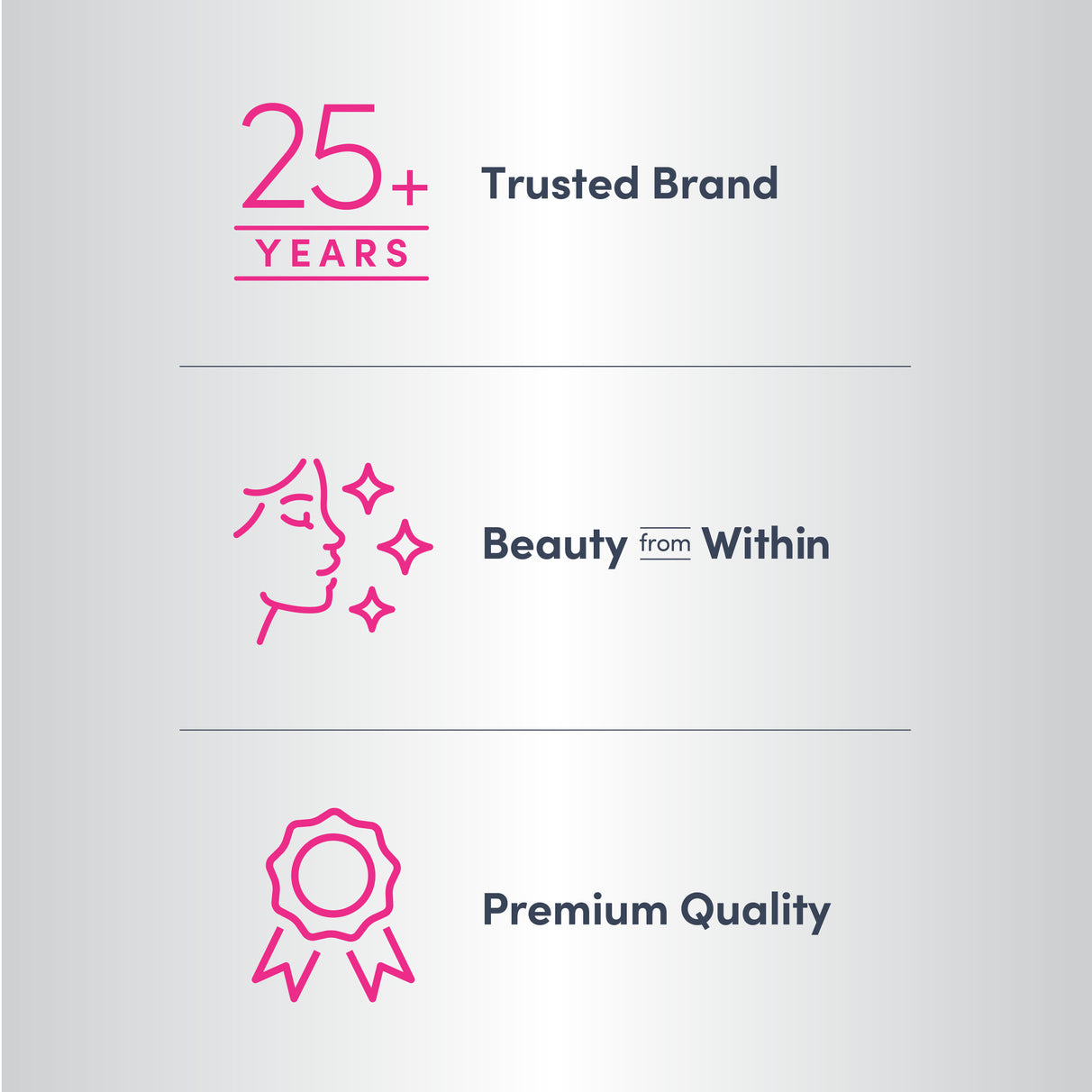 Each serving features 60 mg of Hyaluronic Acid, a polysaccharide with a chemical makeup that attracts and holds water molecules. It acts as a humectant, which means it helps bind water to your body’s cells. Many beauty products contain Hyaluronic Acid to provide additional support since it is found naturally in our skin.