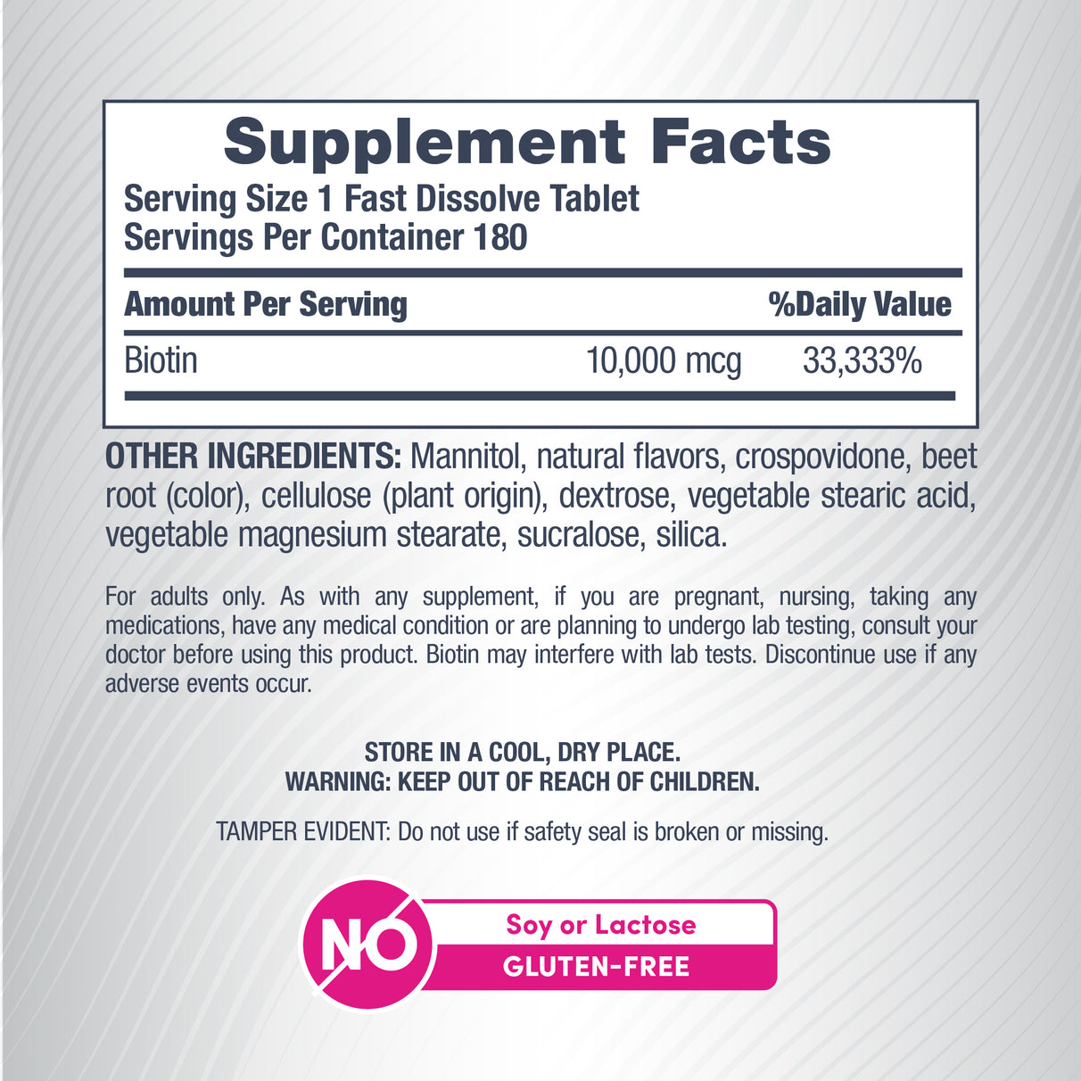 Biotin 10,000 MCG Fast Dissolve, 180 Fast Dissolve Tablets