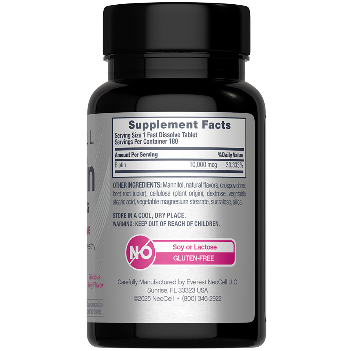 NeoCell® Biotin Fast Dissolve Tablets stand out from typical biotin supplements for their high potency and maximum support. Each serving delivers a powerful dose of 10,000 mcg of biotin, designed to support healthy hair, skin, and nails.*
