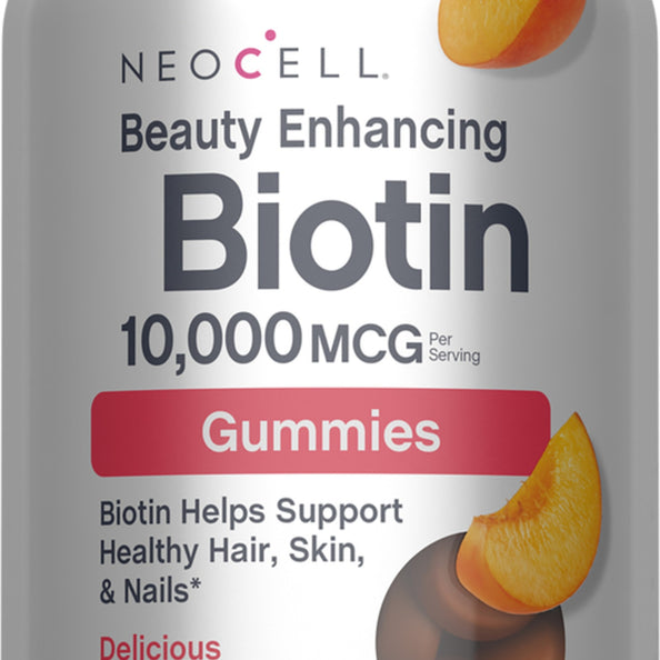 Biotin 10,000 MCG Gummies Peach Flavor, 72 Tasty Vegan Gummies