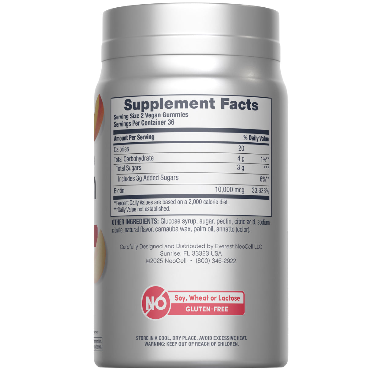 Biotin 10,000 MCG Gummies Peach Flavor, 72 Vegan Gummies