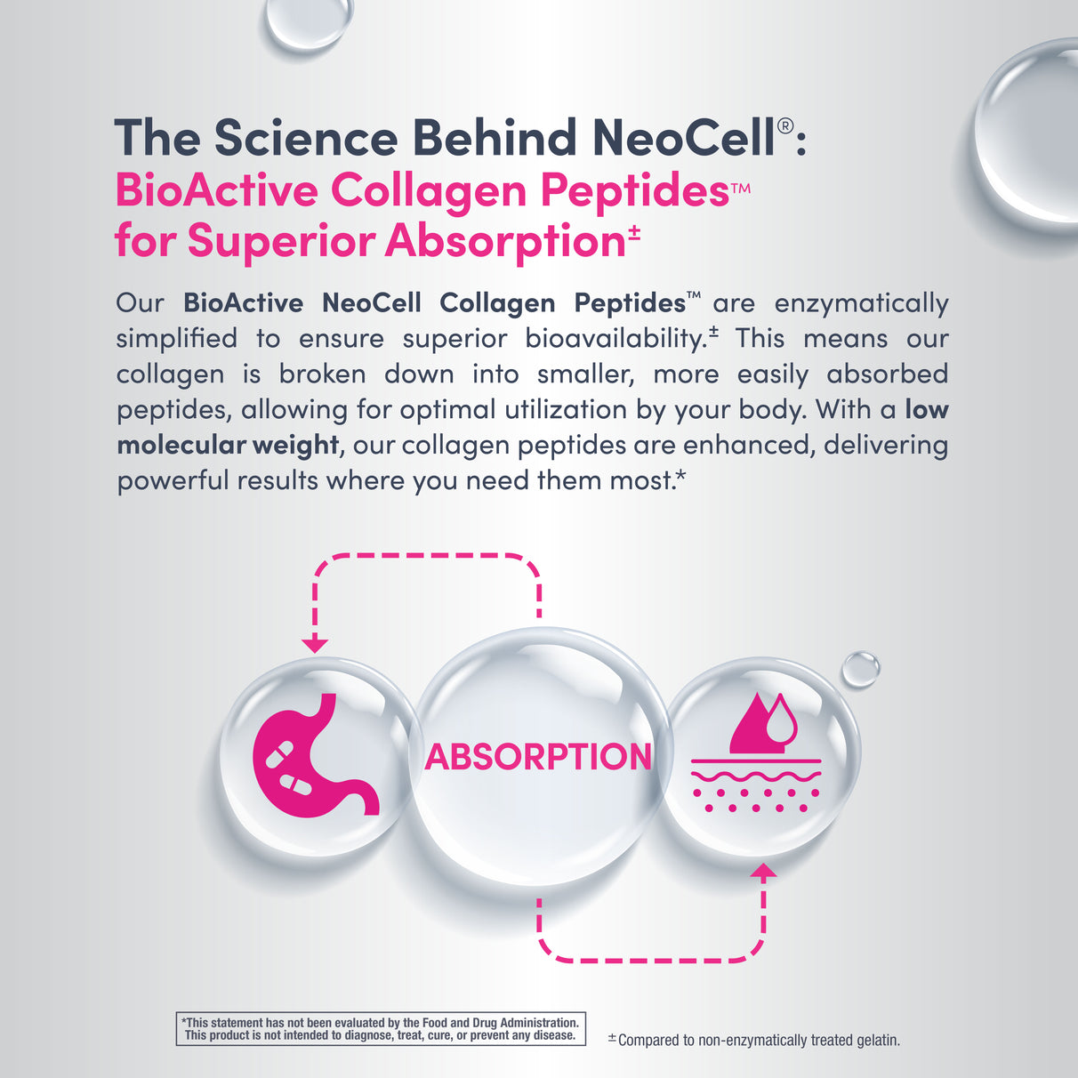 NeoCell® Collagen Beauty Builder caplets go beyond basic collagen formulas by combining BioActive NeoCell Collagne Peptides™ with a targeted blend of beauty-supporting nutrients. While many collagen products focus solely on collagen, our advanced formula is crafted to truly promote a complete beauty from within approach.* Our formula is set apart by the inclusion of hyaluronic acid, alpha-lipoic acid, biotin, and vitamin C.