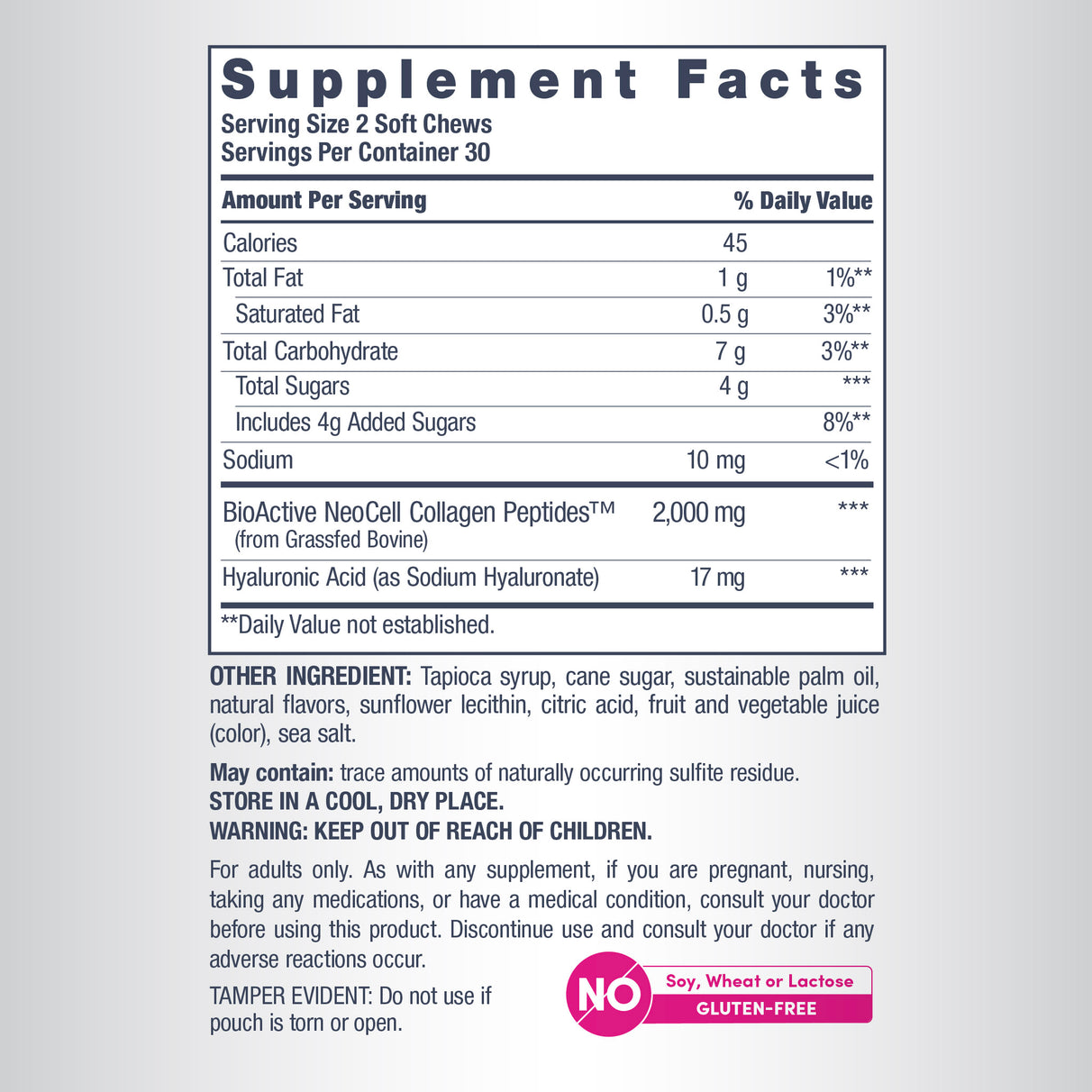 Soft chews are a wonderful alternative for those who dislike or have trouble swallowing pills. They’re also great for those who are on the go and require their beauty routine to be convenient above anything else. These soft chews are a delicious fruit punch flavor, but also free of gluten, soy, wheat, and lactose. What a win!