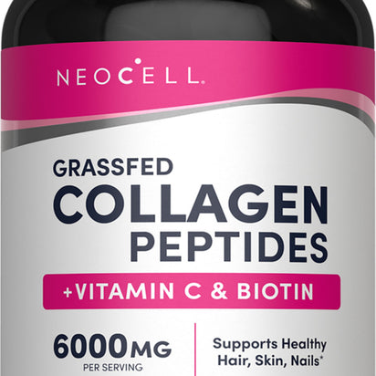 Reveal your natural radiance with NeoCell® Grassfed Collagen Peptides plus Vitamin C and Biotin. Our premium formula delivers 6 grams of BioActive NeoCell Collagen Peptides™ per serving, along with Vitamin C and Biotin to aid in collagen formation and help support healthy hair, skin, and nails.*