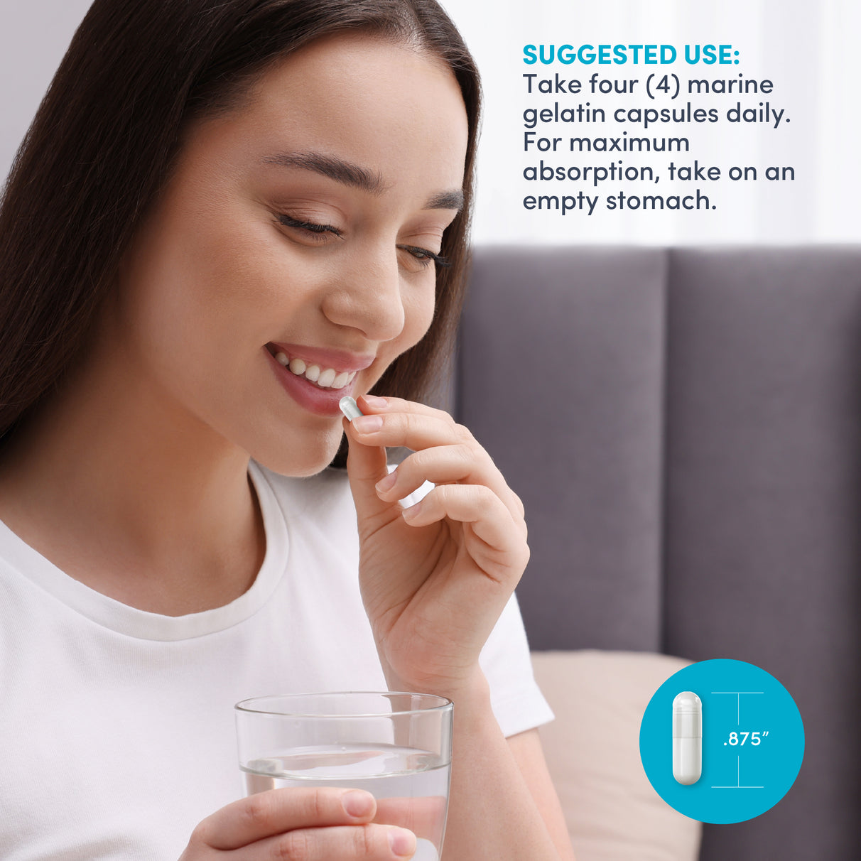 Take four (4) marine gelatin capsules daily. For maximum absorption, take on an empty stomach.