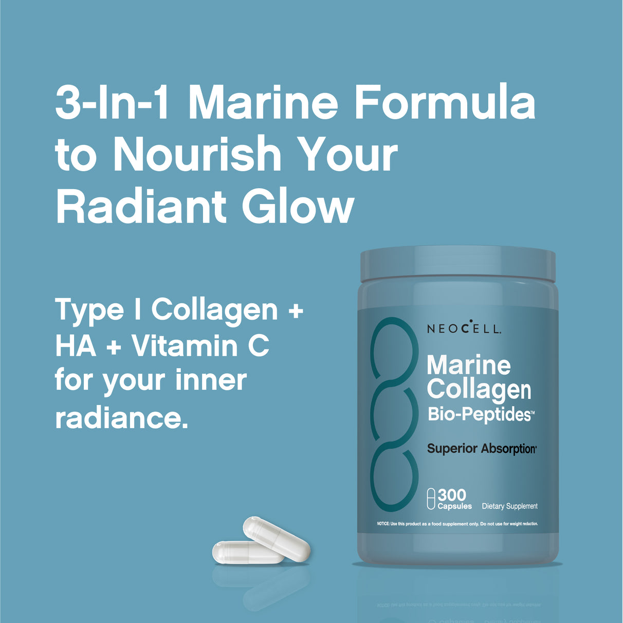 At NeoCell®, we prioritize premium quality collagen in every formula. Our Marine Collagen Peptides™ deliver 2,000 mg of collagen per serving, sourced from fish like tilapia, carp, and catfish. Marine collagen is known to be smaller in size as well, making it more bioavailable so your body can better absorb it.**
