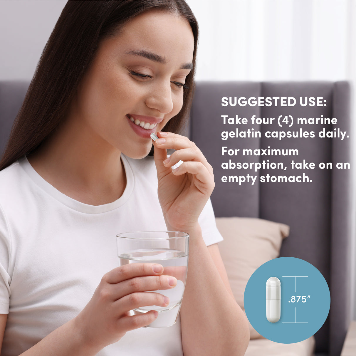 Take four (4) marine gelatin capsules daily. For maximum absorption, take on an empty stomach.