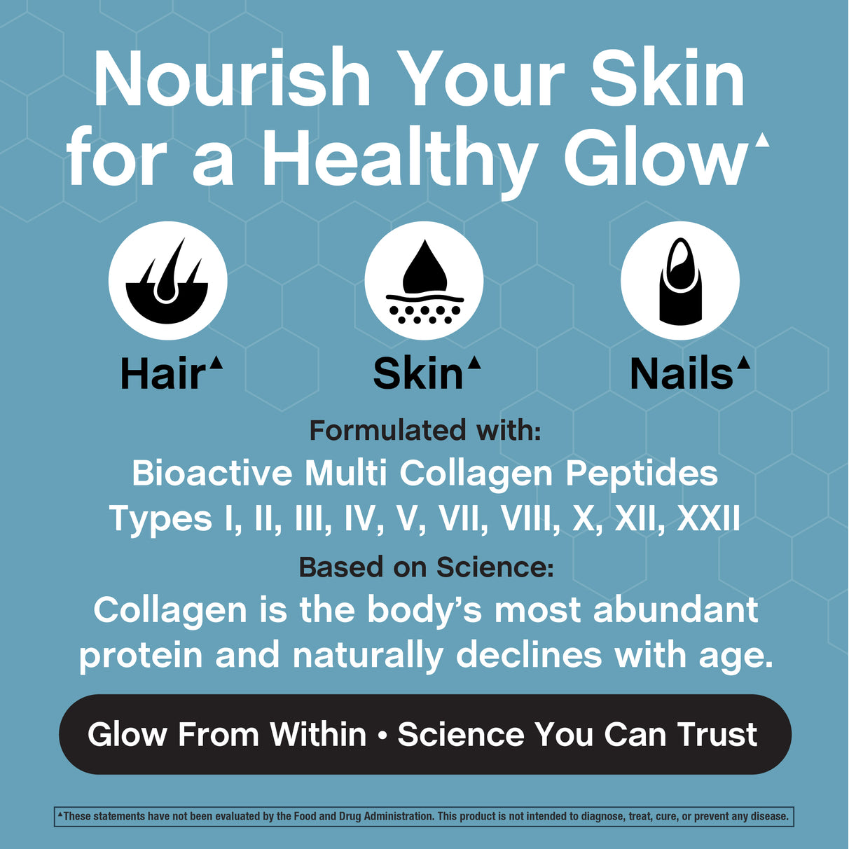 Fuel your glow with NeoCell® Multi Collagen Advanced Bio-Peptides™ powder. Each serving delivers 10 types of food-based collagen from grassfed and pasture-raised bovine, chicken, fish, and eggshell membrane; Hyaluronic Acid; and Vitamin C in the convenience of one formula. Our formula supports skin and joint health, skin elasticity, and antioxidant health.△