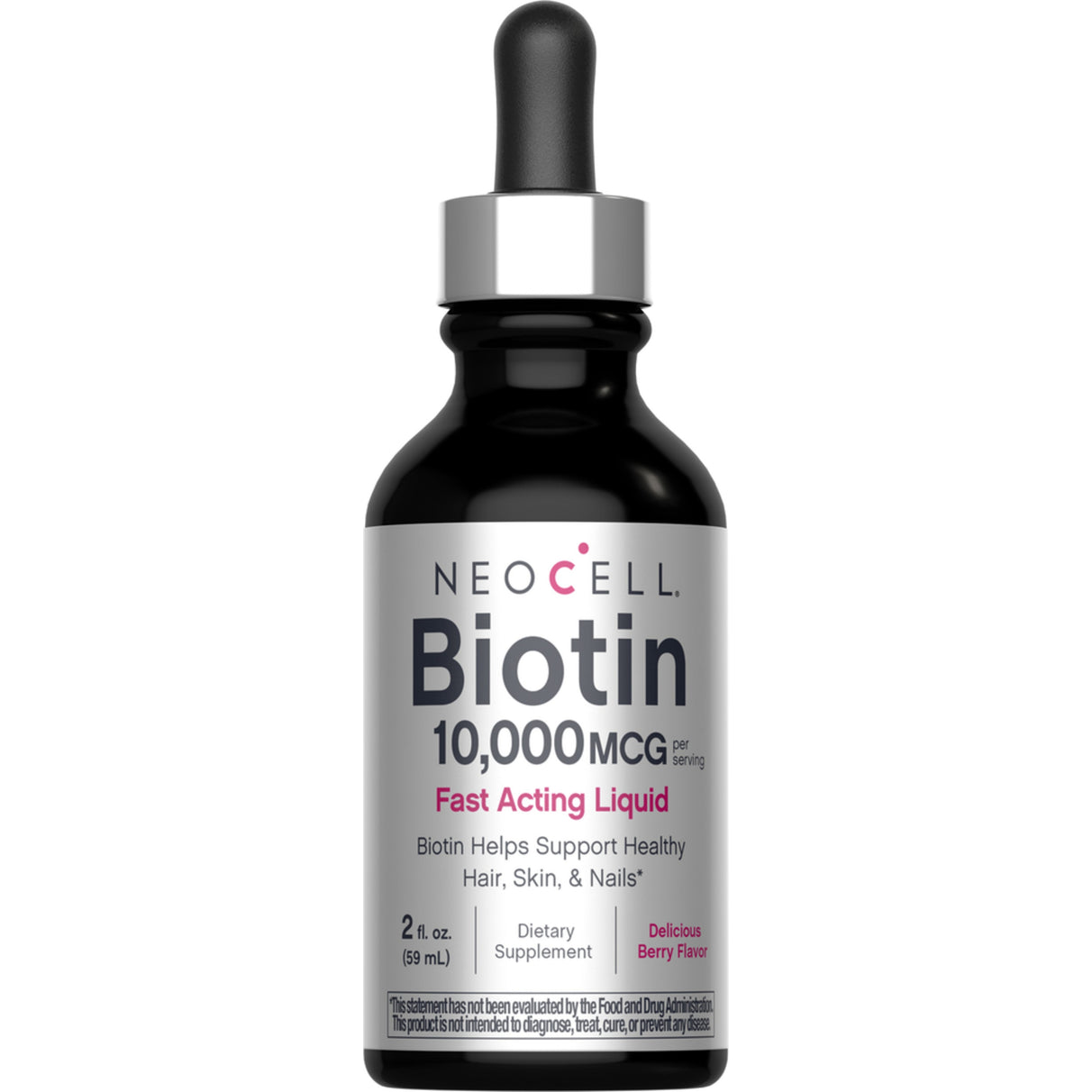 Biotina 10.000 MCG Ação Rápida Líquido Sabor Frutas Vermelhas, 2 fl oz (59 mL) Frasco com Conta-gotas